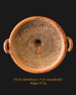 Greek kylix most likely made in Apulia, dated to around the mid-4th century B.C. Classical example of utility ceramics – A chalice used for drinking wine. The vessel is preserved in very good condition, with no cracks or structural defects, with visible signs of age, loss of the firn layer and lime deposit inside. Found in the south of France.