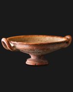 During the symposiarchy it is master of the feast (symposiarch) decided how much wine and at what rate the participants would drink. Kyliks, such as this specimen from Apulia, was not only a utilitarian vessel, but also part of a ritual. Held with both hands, it symbolized community and balance, and its flat bowl often exposed the paintings when the wine ran out.