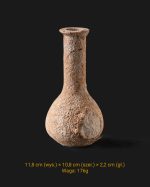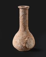Authentic Roman balsamarium (unguentarium) from the 1st-2nd century BC, made of clay using a potter’s wheel. The vessel, which had a distinctive form – with a cracked belly, slender neck and wide, orifice-shaped spout, was used to store liquid fragrances and toilet scents. It was often part of the equipment of the deceased. Formerly it was believed that balsamaria were used to collect the tears of mourners during funeral ceremonies – hence the misnomer lacrimatorium (from lacrima – tear).