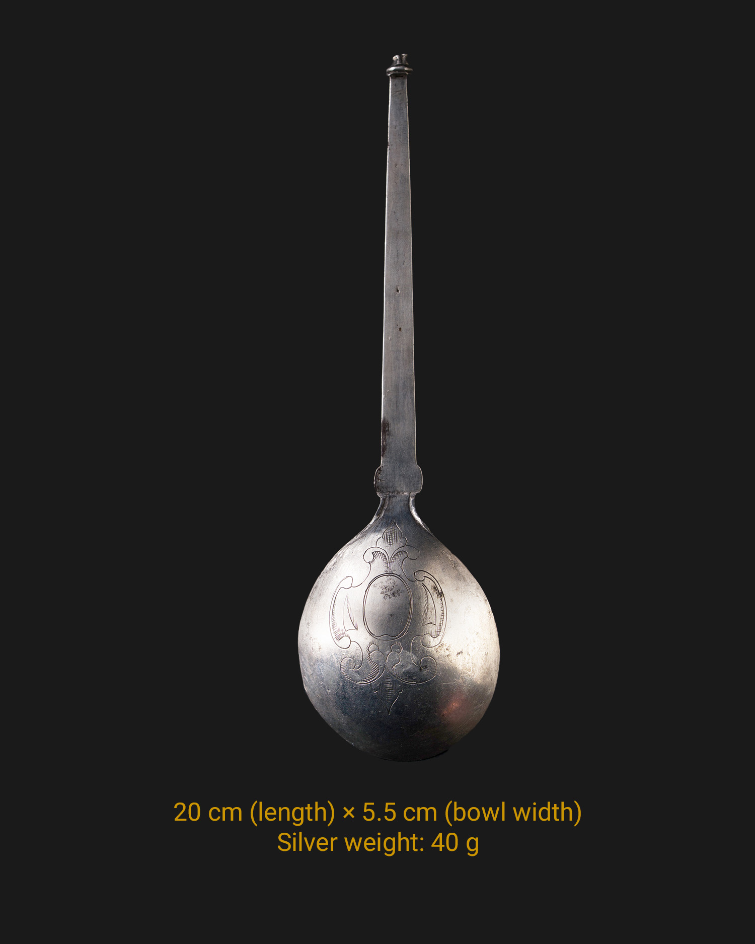 The spoon is sparing in form and ornamentation, which has to do with a certain workshop standard and aesthetic canon that prevailed not only in Poland, but also in Silesia until the 18th century.