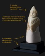 The figure is placed in a Plexiglas display on a base that is a reconstruction of its lower part.