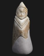 The depiction of a human figure wearing a distinctive headdress may indicate a clerical person, probably a bishop. Figures of this type in chess games usually represented goons, although the form here is simplified and stylized in accordance with Nordic aesthetics.
