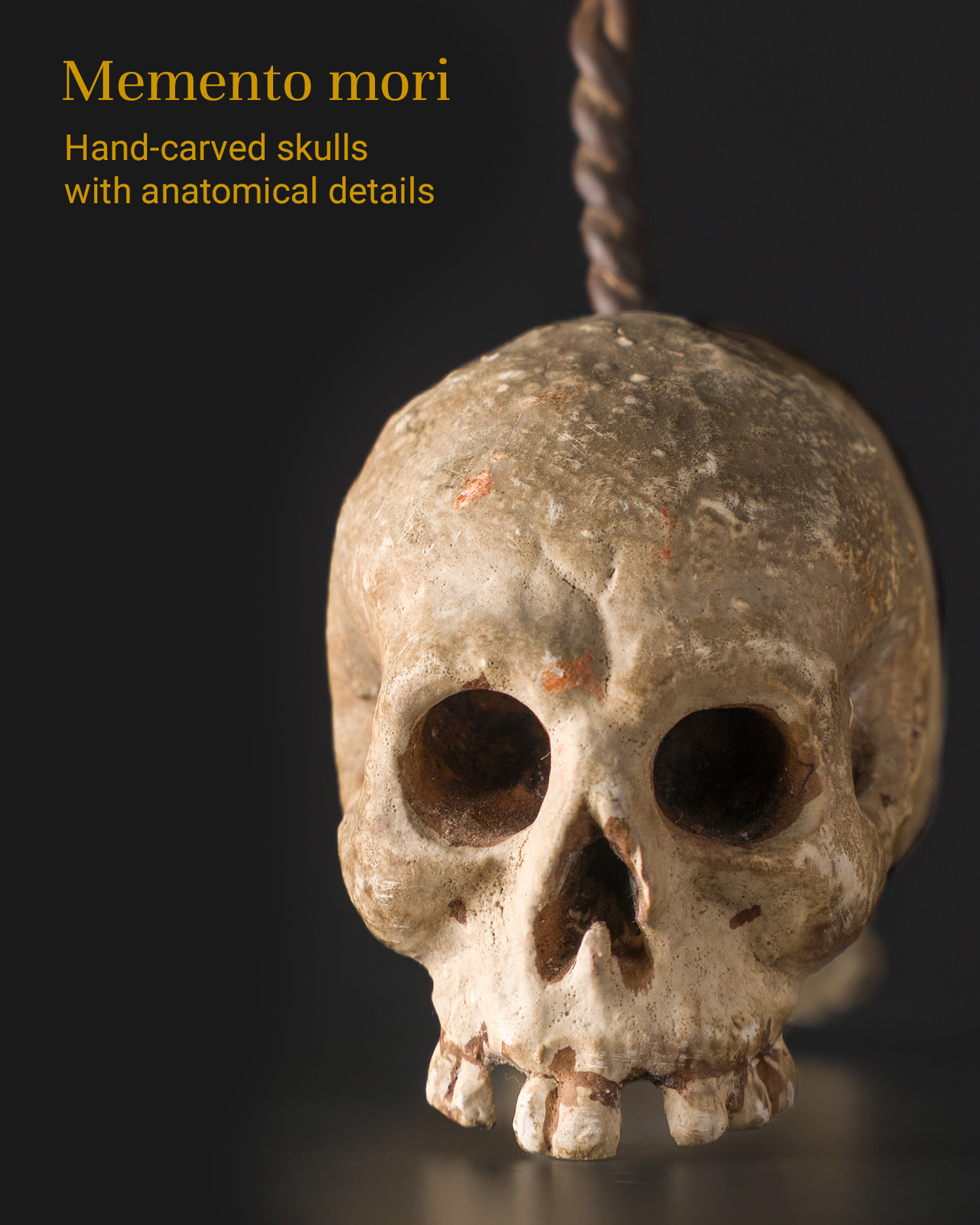 It can function as an exhibit in a gallery of curiosities, a theatrical or photographic prop, a decorative object in a contemplative or artistic space. It will also work well as part of a museum exhibition devoted to the Baroque, asceticism or sepulchral art.