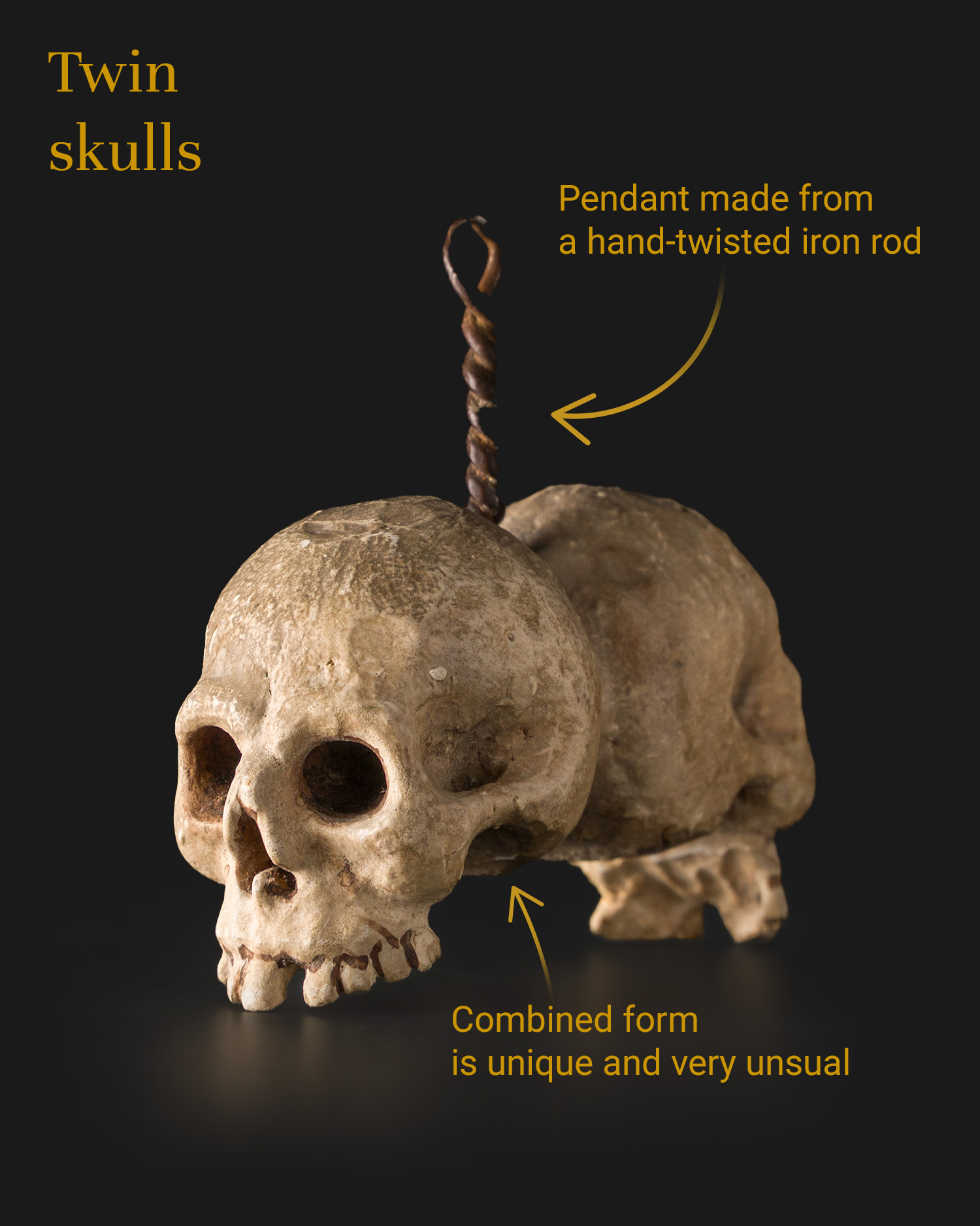 Twin form of two connected skulls with a hanger |