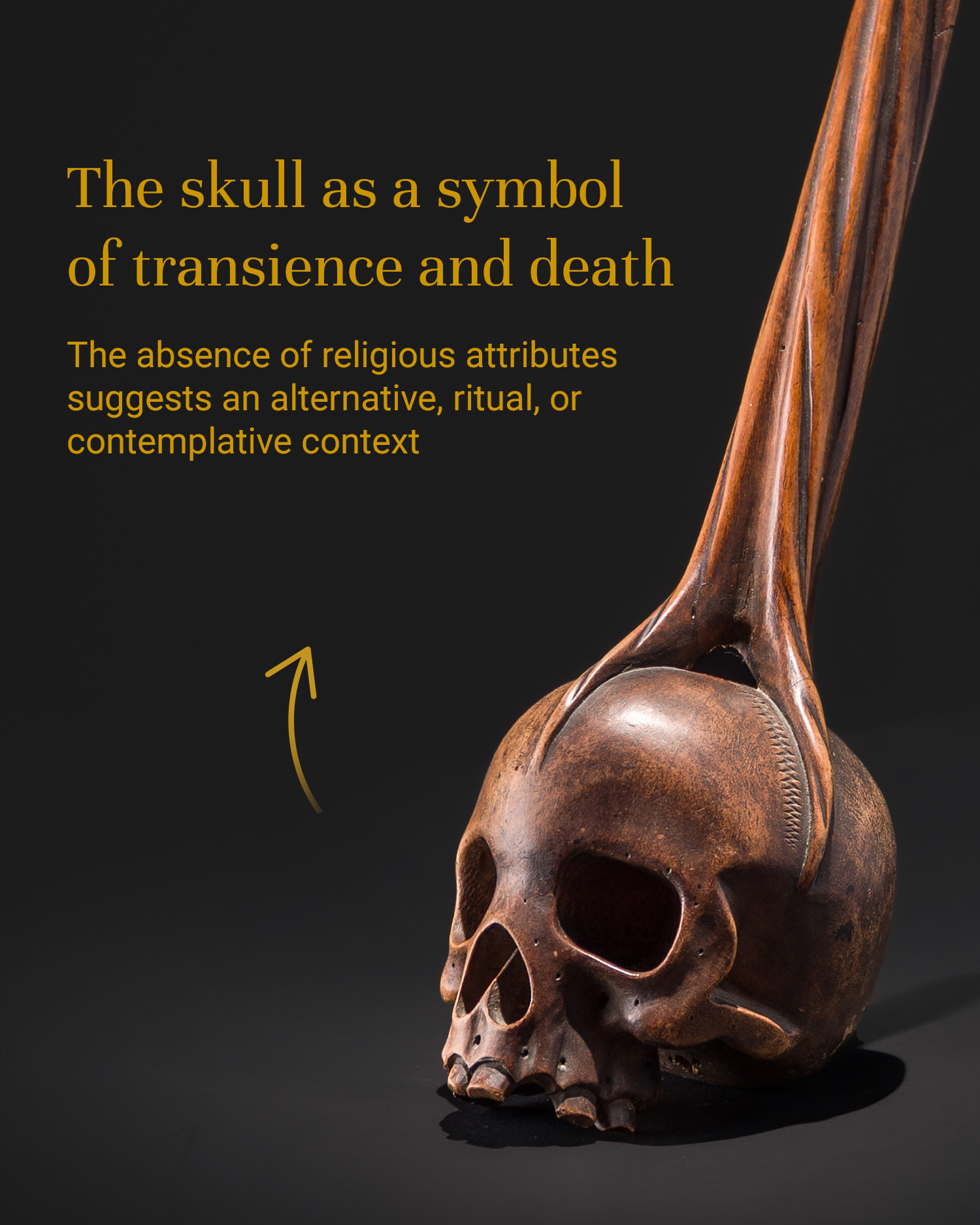 Such objects were most often created outside the official mainstream of religious art - in esoteric, Masonic circles or semi-private initiation cults. Skull symbolism, present in monasteries, hermits' cells, or penitential rituals, served as a reminder of the fragility of life. It is possible that the sculpture was used during meditations on death or as a ritual prop.