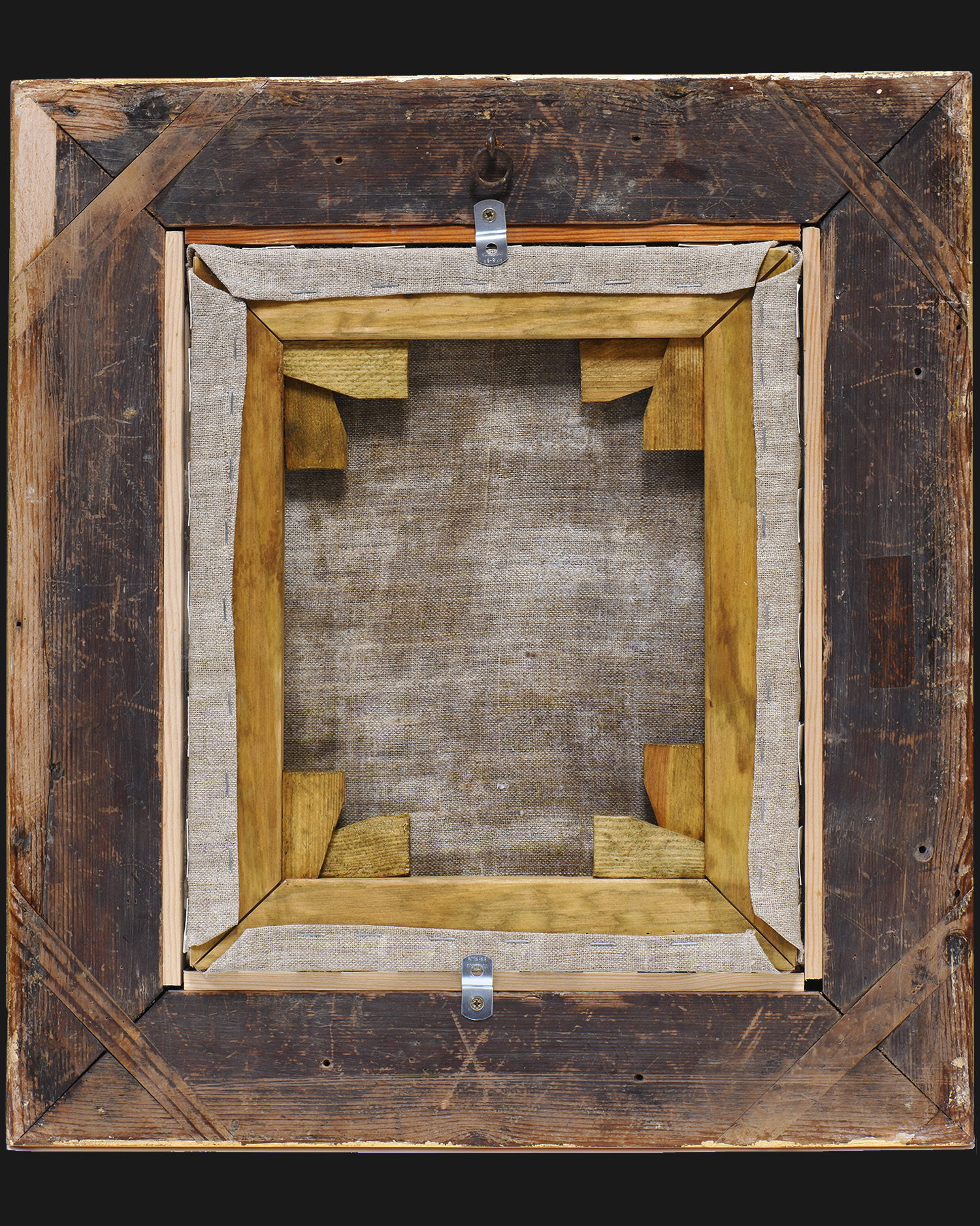The painting was made with oil technique on board, in typical Flemish school style. The frame is original, wooden, veneered, with preserved gilt edge.