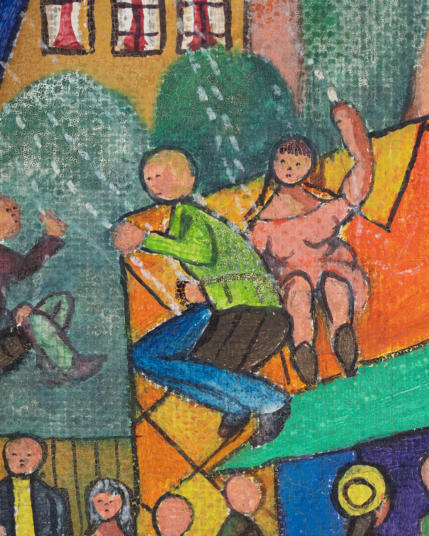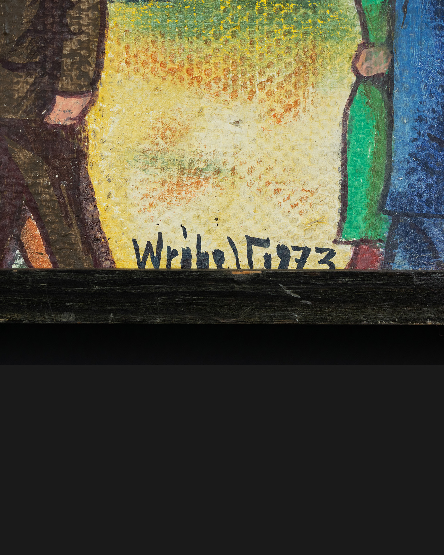 Obraz powstał w 1973 roku, w czasie gdy życie codzienne toczyło się równolegle z industrializacją. Wróbel należał do Grupy Janowskiej, skupiającej artystów amatorów dokumentujących rzeczywistość robotniczych dzielnic Śląska. Obraz staje się zapisem społecznych rytuałów, momentów radości i zbiorowego uczestnictwa w kulturze masowej. To wizualny komentarz do realiów PRL, w których zwykłe wydarzenia zyskiwały znaczenie poprzez wspólnotowe przeżywanie