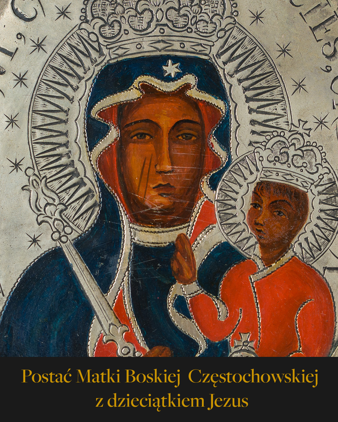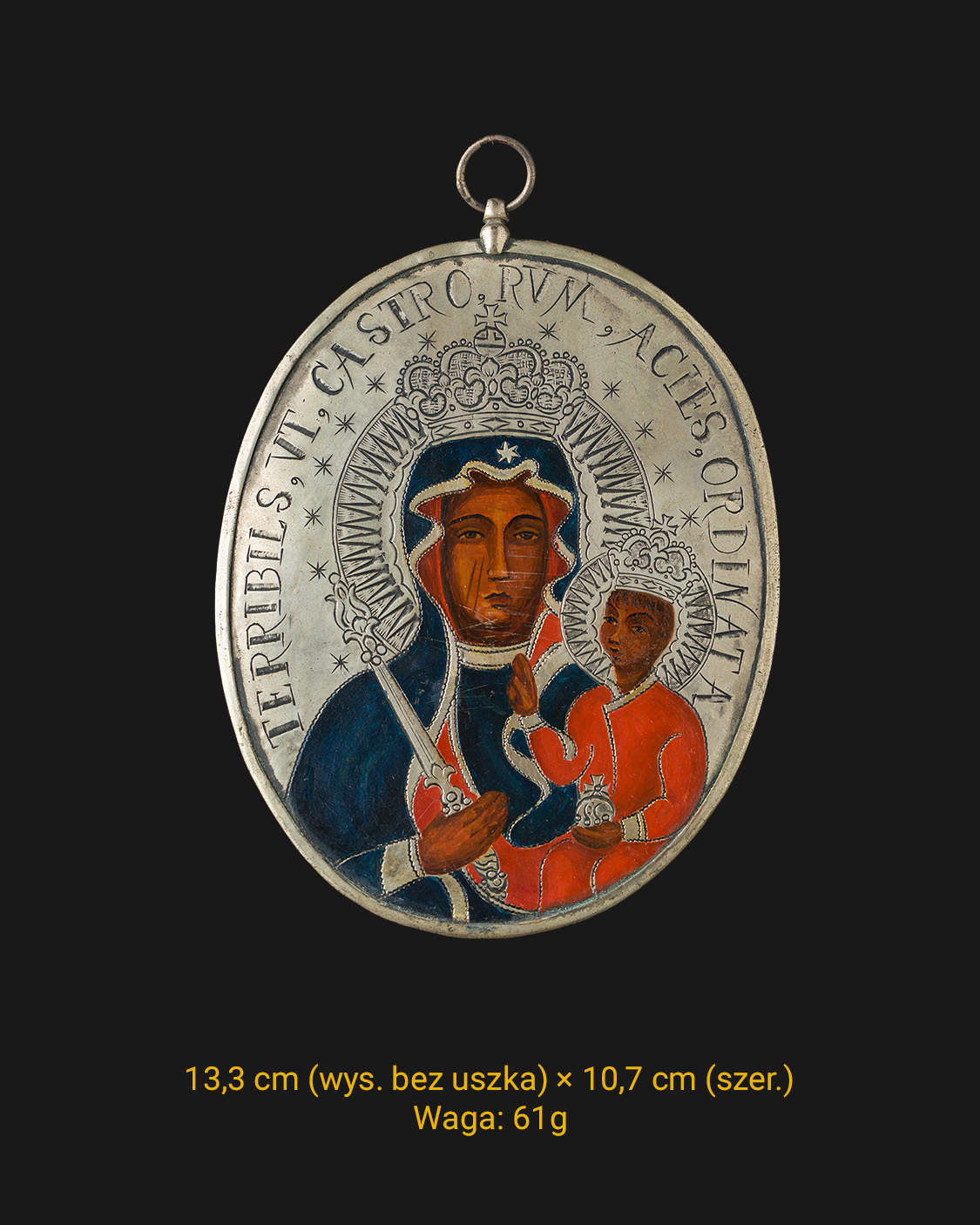 Unikatowy, XIX-wieczny kaplerz (medalik zawieszany) o dużym formacie, przedstawiający wizerunek Matki Boskiej Częstochowskiej z Dzieciątkiem Jezus. Front zdobiony jest rytowanym przedstawieniem ikony z ręcznie polichromowanymi twarzami, szatami i aureolami. W otoku napis łaciński: “TERRIBILIS UT CASTRORUM ACIES ORDINATA” cytat z Pieśni nad Pieśniami, odczytywany jako symbol siły Maryi jako Opiekunki i Królowej.