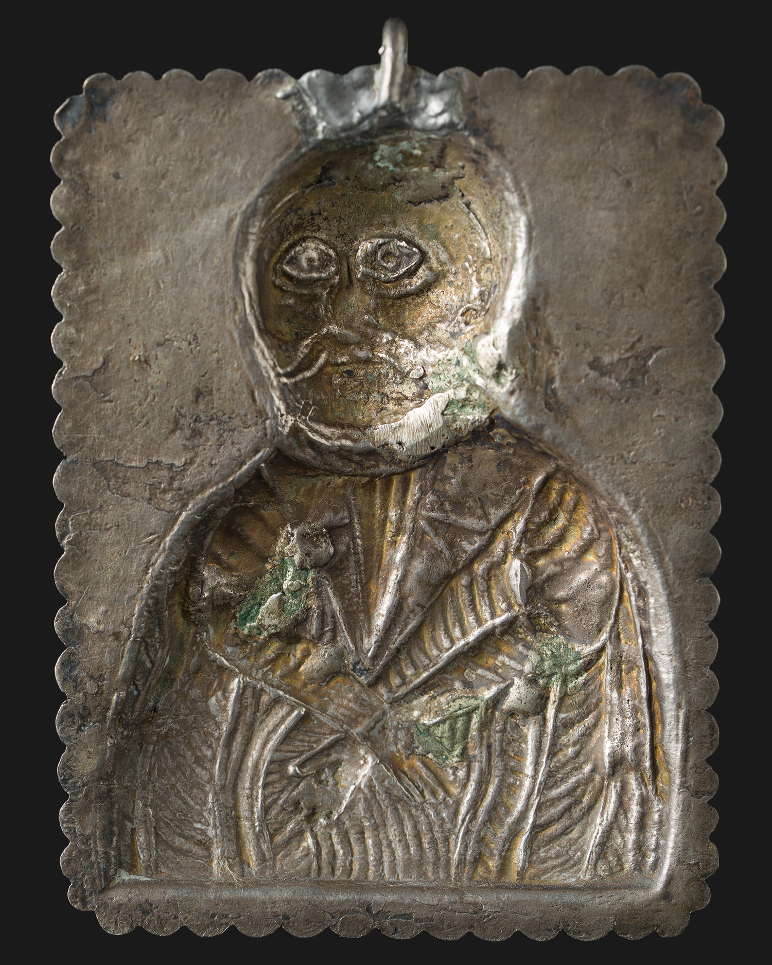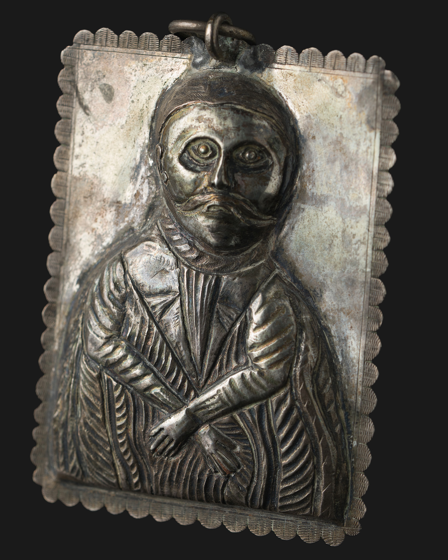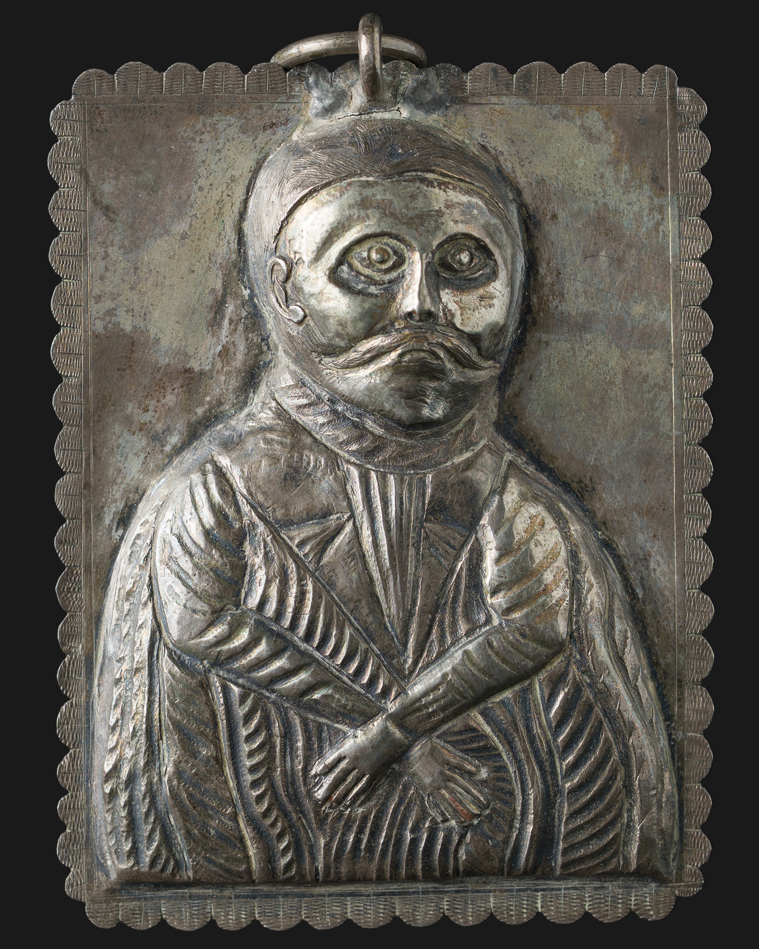 Polska plakieta wotywna z wizerunkiem szlachcica, srebro repusowane, Polska, XVII–XVIII w.