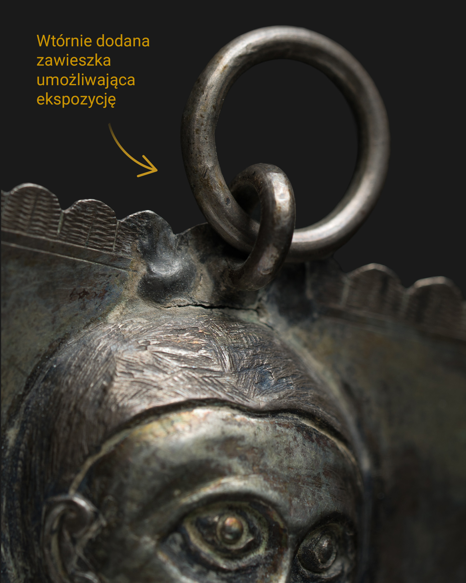 Bardzo dobry; miejscowa patyna, drobne przetarcia powierzchni, wtórnie przylutowana zawieszka |
