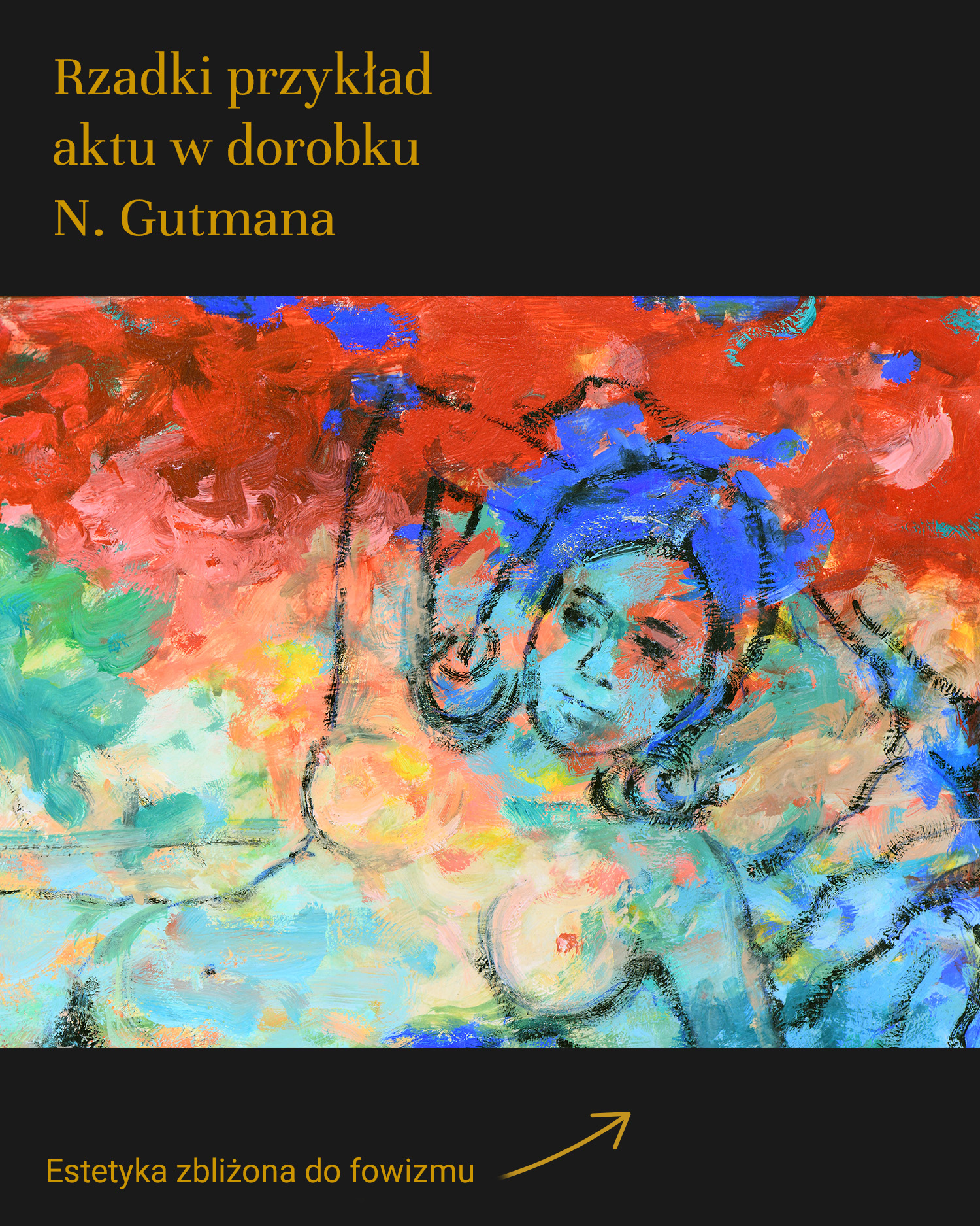 Prace Gutmana ukazujące akt należą do wyjątków, dlatego to przedstawienie ma szczególną wartość dla kolekcjonerów. Atrakcyjność podnosi wyrazista kolorystyka, zbliżona do estetyki fowizmu, i sposób ukazania postaci, dzięki czemu obraz wyróżnia się na tle innych prac artysty.