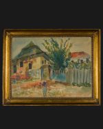 Natan Korzeń (1895-1941), Pejzaż z Kazimierza Dolnego z widokiem na synagogę, lata 30. XX w.