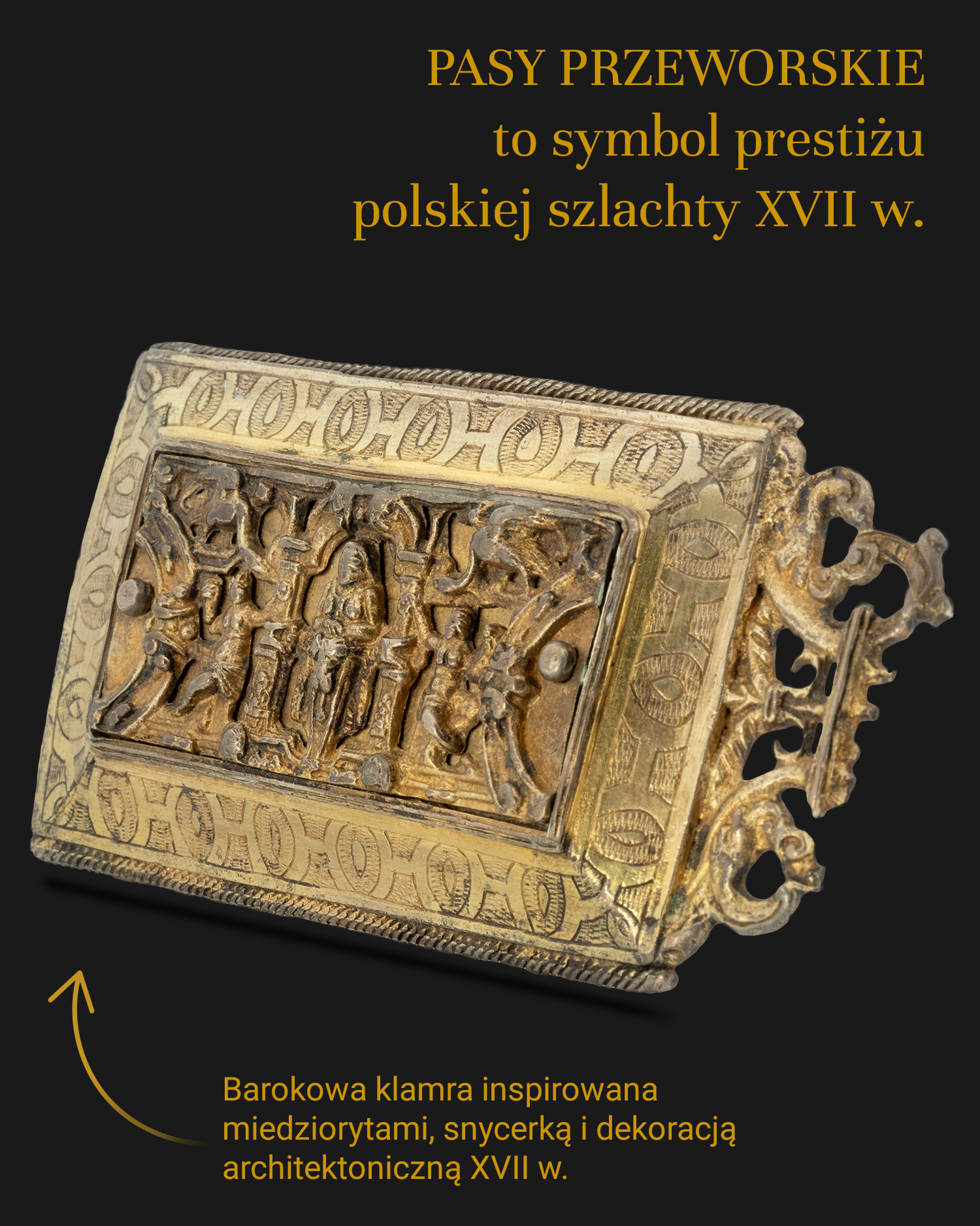 Klamry do pasów przeworskich pojawiają się na rynku niezwykle rzadko, a każdy egzemplarz ma charakter unikatowy, ponieważ był wykonywany ręcznie przez złotnika i różni się detalami formy oraz ornamentu. Dla kolekcjonerów i muzeów są to obiekty szczególnie cenione jako sztandarowe przykłady polskiego sarmatyzmu – łączące barokową dekoracyjność, indywidualny styl i element dawnego stroju reprezentacyjnego. Zachowana klamra stanowi więc nie tylko rzadkość rynkową, lecz także ważny świadek kultury materialnej Rzeczypospolitej szlacheckiej.