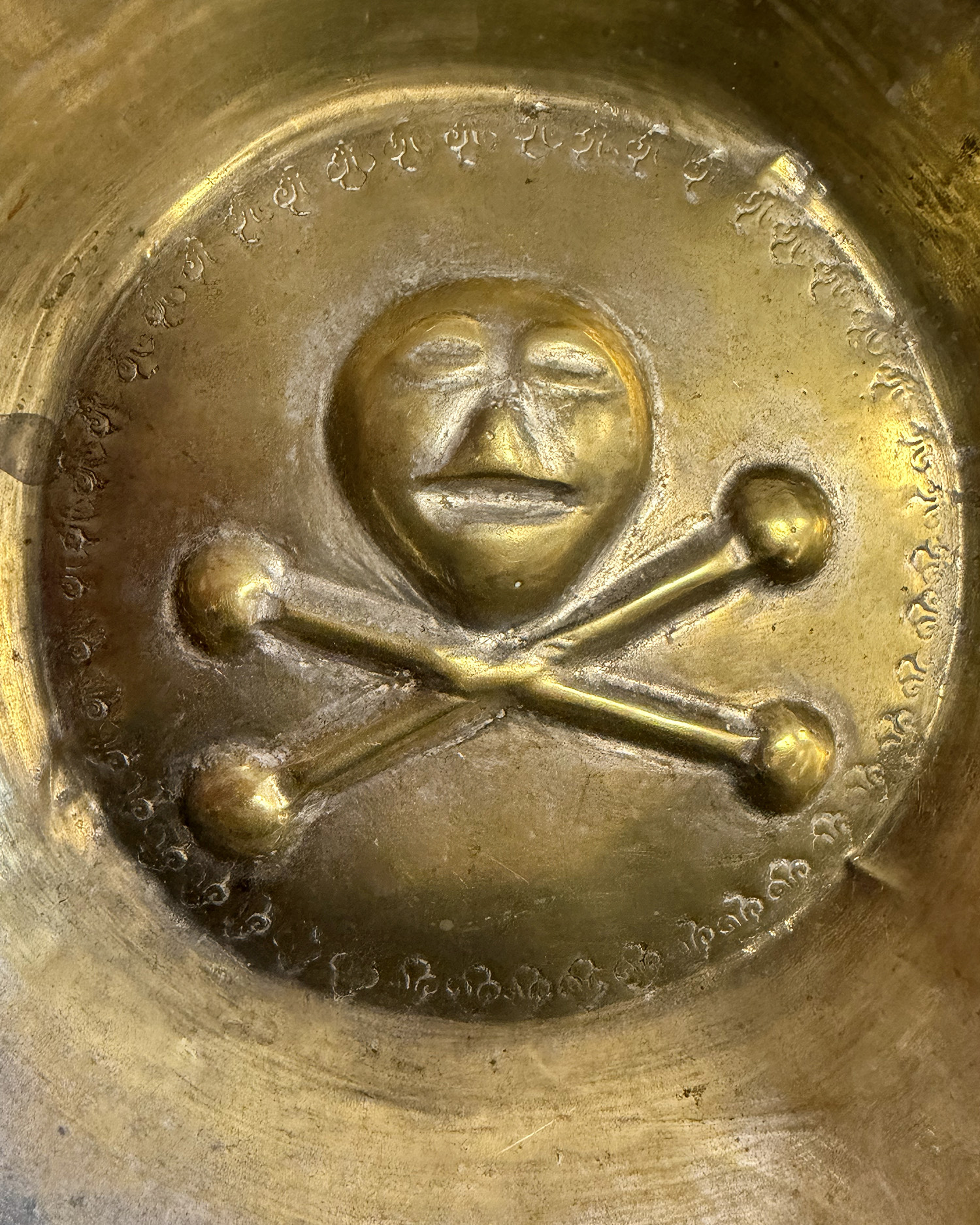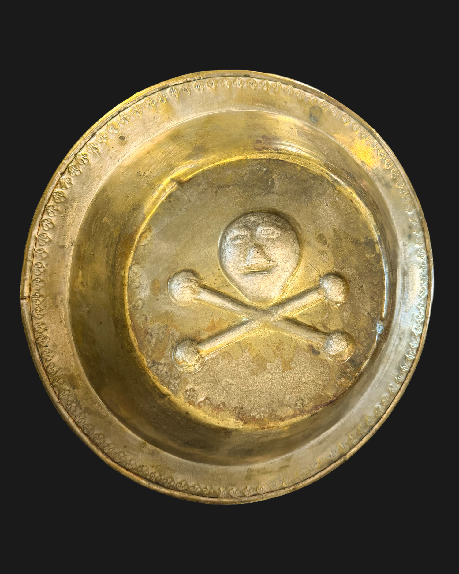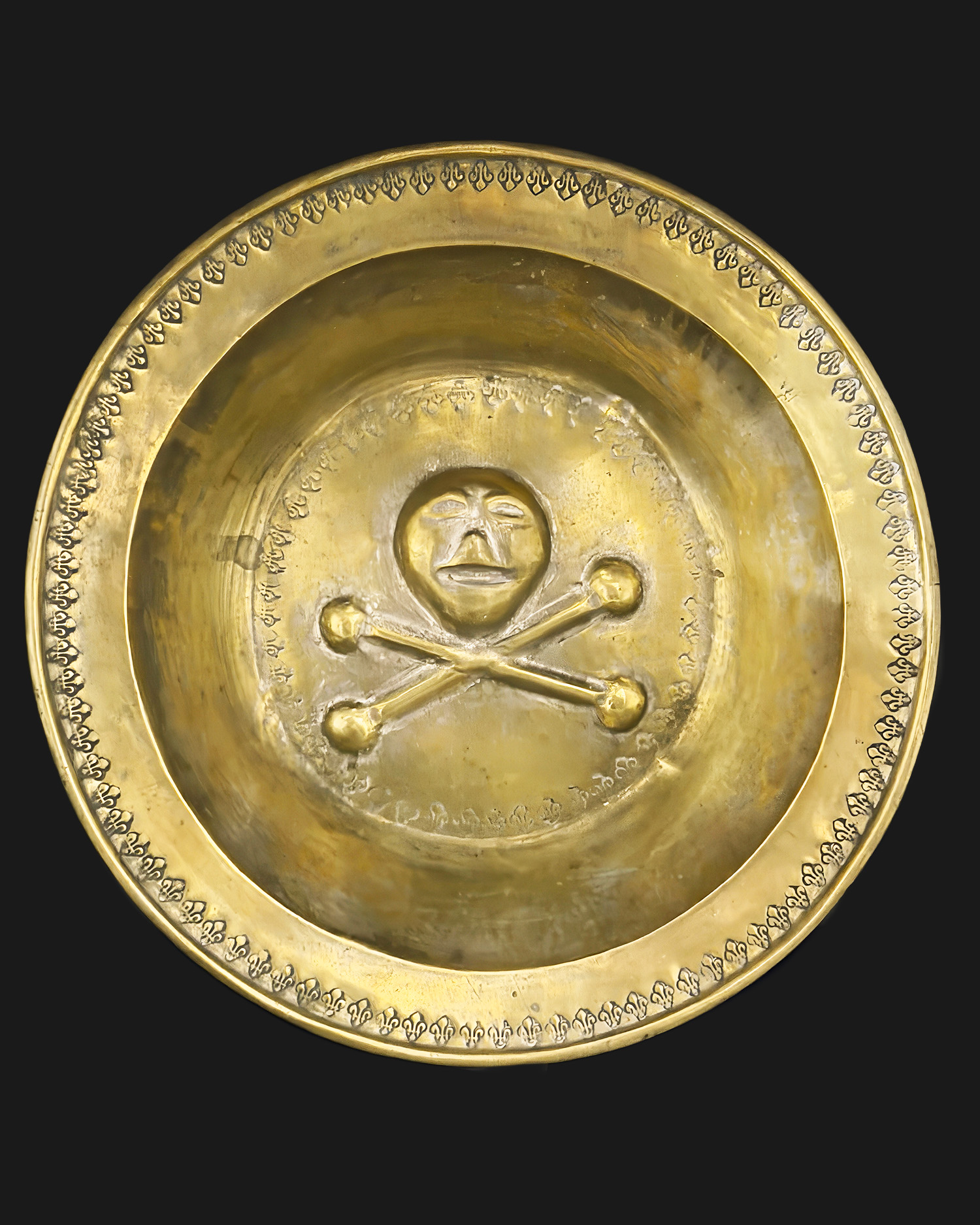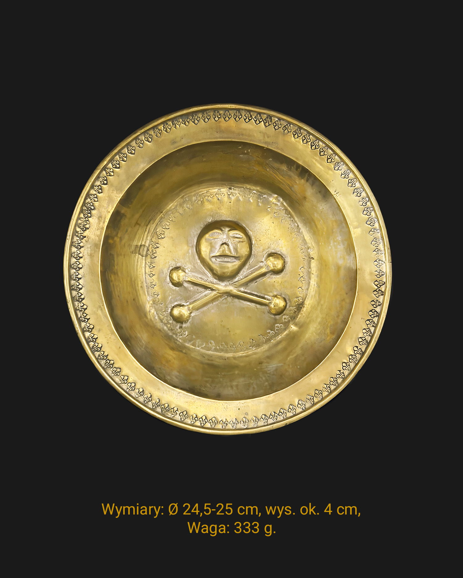 Misa norymberska (Beckenschlägerschüssel) z dekoracją memento mori, mosiądz, Niemcy (Norymberga), XV-XVI w.