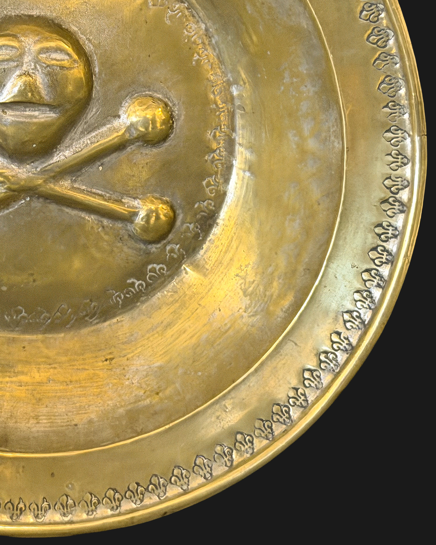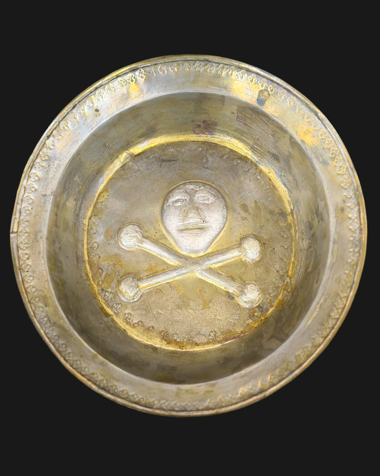 Typ dekoracji memento mori występuje na Beckenschlägerschüssel, ale jest znacznie rzadszy, niż sceny religijne czy rozety. Wyobrażenie czaszki odbiega od realistycznej anatomii – została ona przedstawiona niemal jak twarz żywego człowieka,