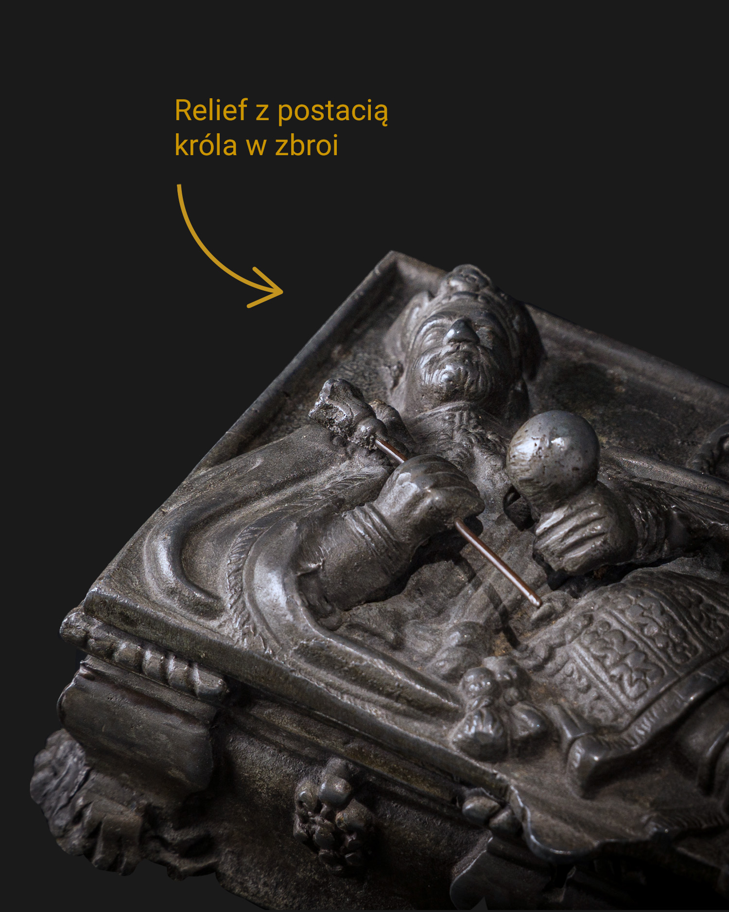 Stefan Batory (1533–1586), książę Siedmiogrodu, król Polski i wielki książę litewski, uważany był za jednego z najsilniejszych władców Rzeczypospolitej Obojga Narodów. Zwycięzca w wojnie z Moskwą i reformator armii, stał się symbolem suwerenności i siły państwa. Jego nagrobek w Kaplicy Mariackiej na Wawelu, autorstwa Santi Gucciego, to dzieło o wielkim znaczeniu artystycznym i symbolicznym. Przedstawia monarchę w zbroi, w pozycji leżącej, a motyw ten został wiernie odwzorowany na wieku szkatułki, tworząc artystyczną miniaturę tej formy.
