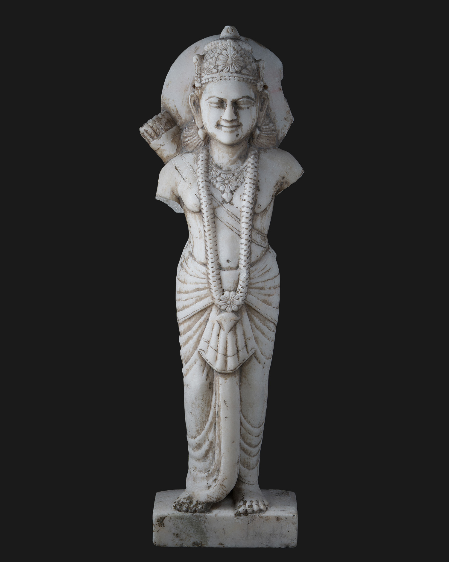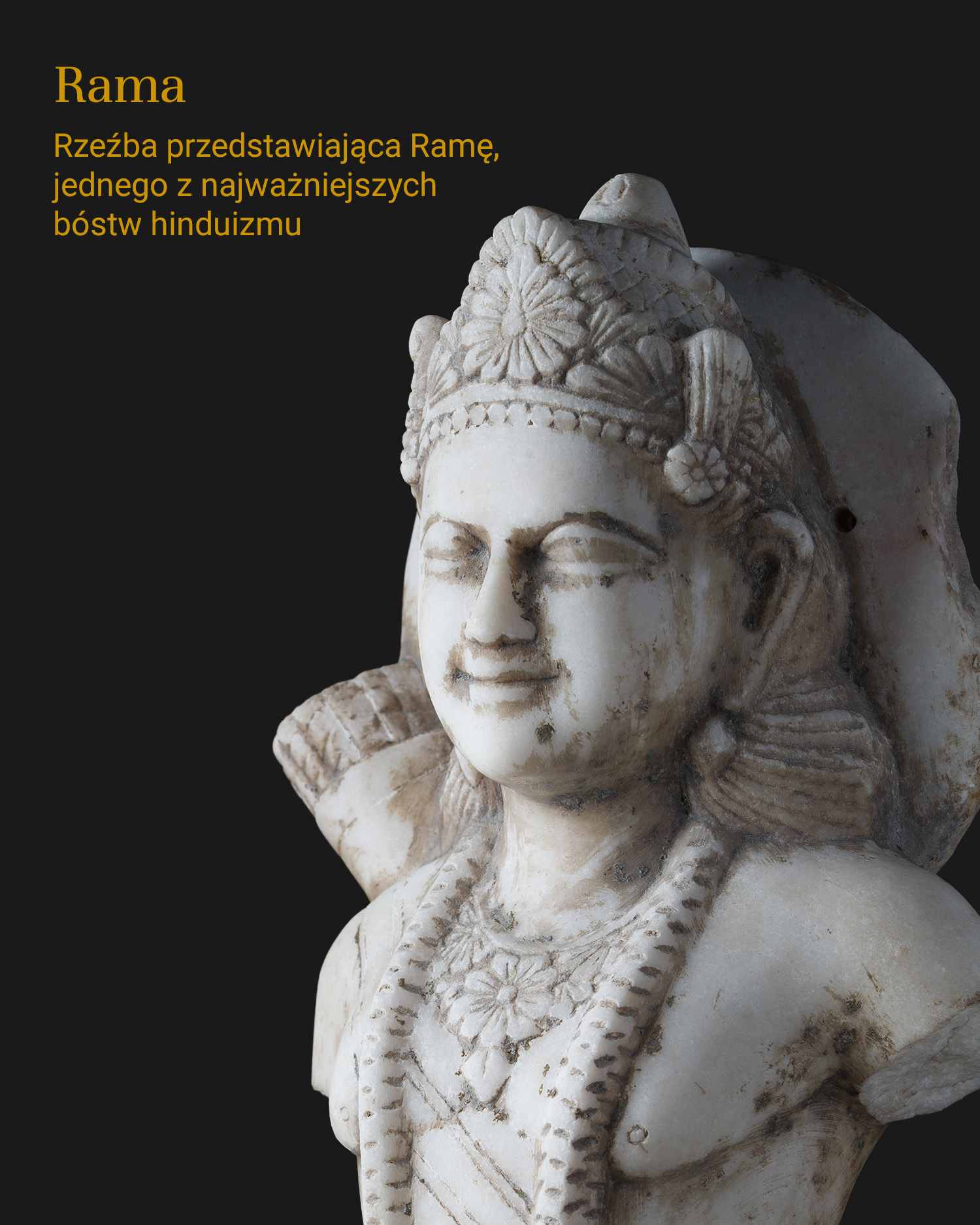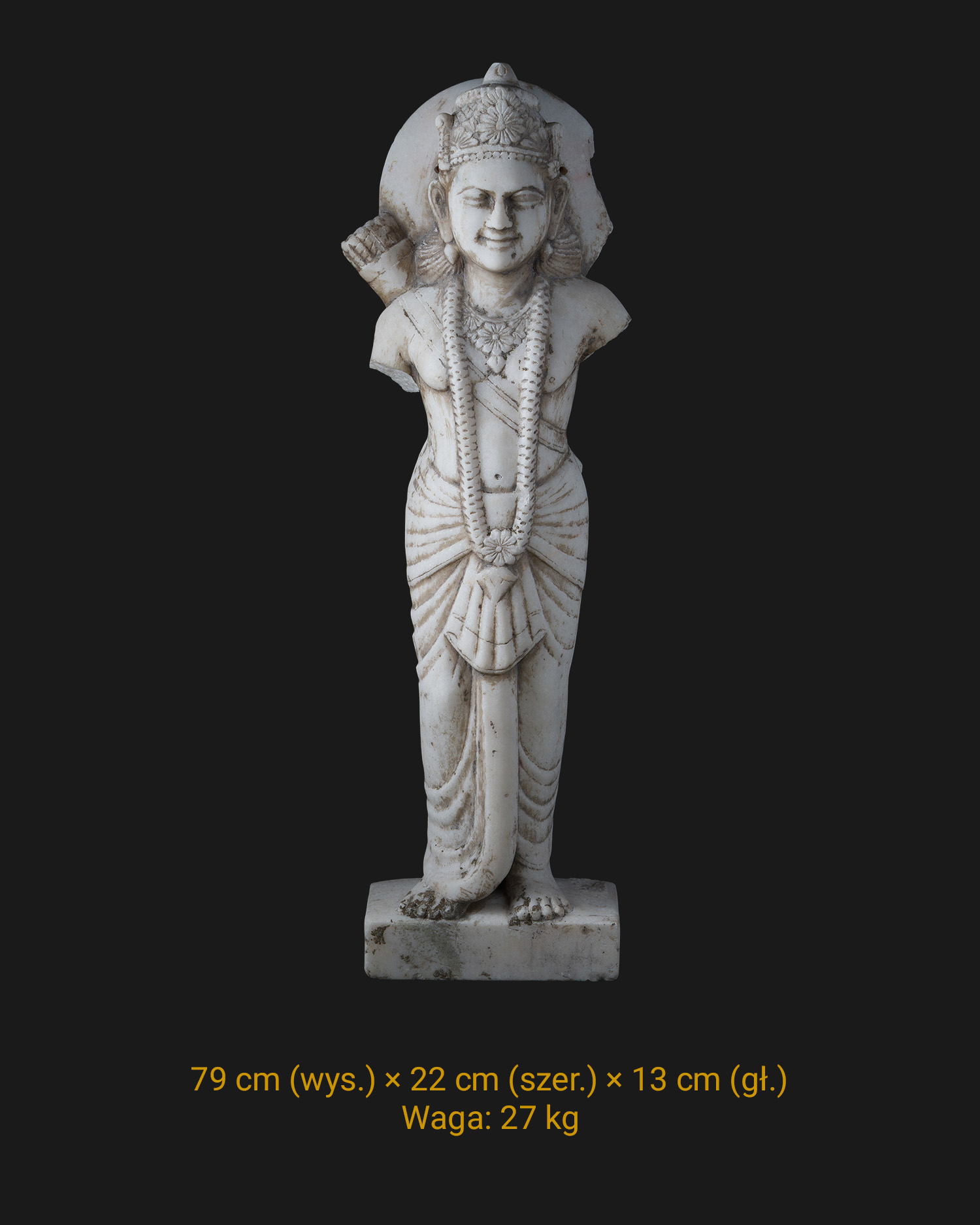 Rzeźba przedstawiająca Ramę, jednego z najważniejszych bóstw hinduizmu, uznawanego za siódmy awatar Wisznu. Obiekt został ręcznie wyrzeźbiony w białym marmurze w Indiach, prawdopodobnie w XIX wieku.