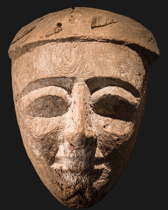 Pełnoplastyczna rzeźba głowy wykonana z białego marmuru, rysy twarzy potraktowane dosyć schematycznie poza charakterystycznymi, migdałowatymi oczami i “uśmiechem Giocondy”. Włosy sięgające szyi, tworzące loki wokół linii twarzy, z tyłu fryzura potraktowana schematycznie. Ukształtowanie szyi od spodu pozwala stwierdzić, że głowa stanowiła pierwotnie element większej kompozycji – np. sarkofagu. Rzeźba umieszczona na wykonanym na zamówienie, dwustopniowym postumencie z czarnego marmuru.